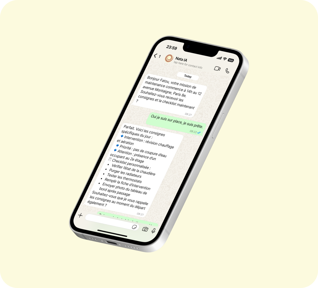 Nata facilite la planification, envoie les bonnes consignes aux intervenants et garantit un suivi qualité pour chaque prestation.