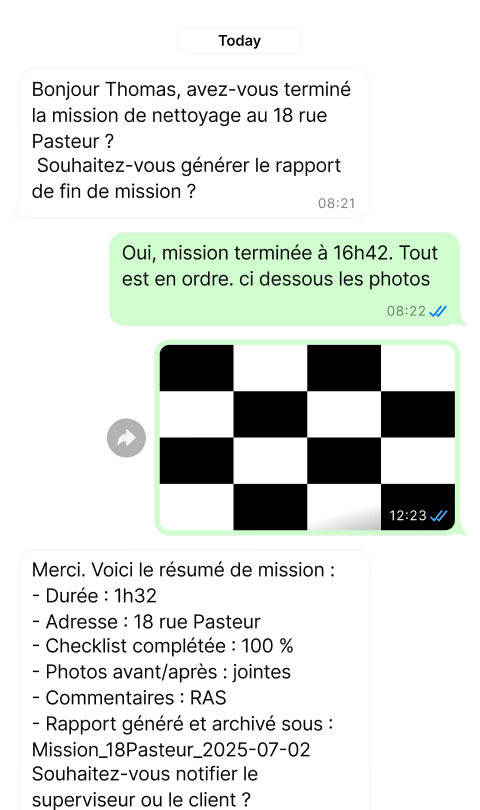 L’IA assigne chaque mission au bon agent et envoie automatiquement les consignes.