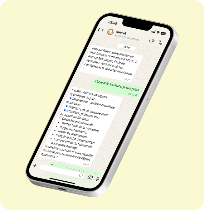 Nata facilite la planification, envoie les bonnes consignes aux intervenants et garantit un suivi qualité pour chaque prestation.